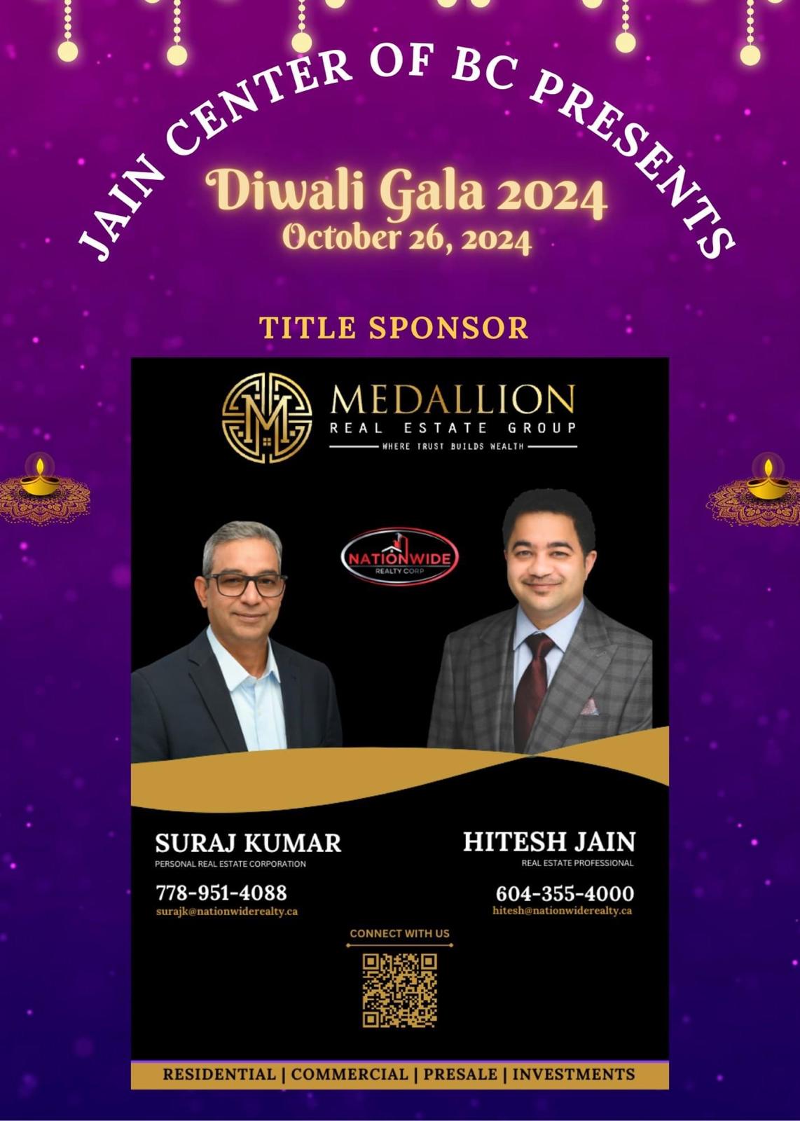 Title Sponsor for Diwali Gala 2024 at Jain Centre of BC